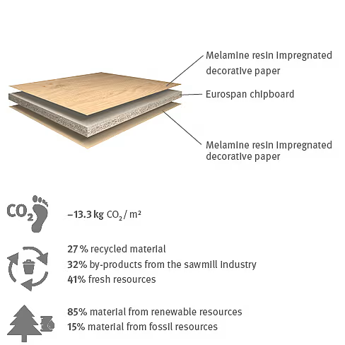 Made from strong Eurospan chipboard with melamine finish for durability and moisture resistance — crafted using 85% renewable and recycled materials for a stylish, sustainable choice.